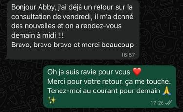 Suivi de consultation à 20€ après une consultation complète, sur un thème abordé pendant la consultation.