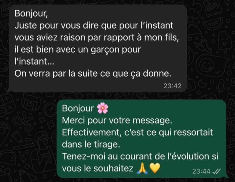 Ces perceptions se précisent ensuite à l’aide de différents supports : cartes, pendule, photos… autant d’outils qui me permettent d’apporter des réponses encore plus justes et détaillées.